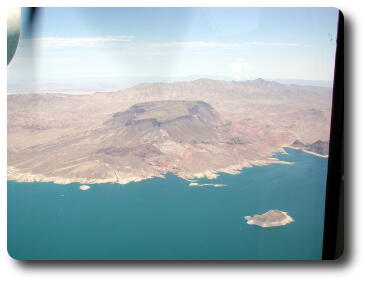 A flat piece of land, on the shores of Lake Mead, the water