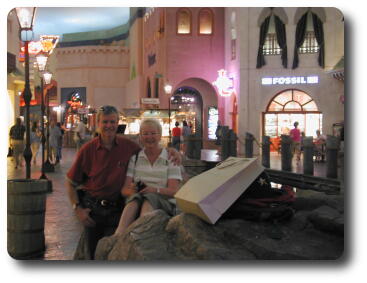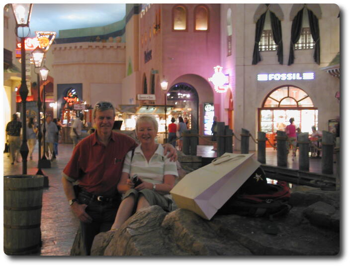 | Another section of the shopping arcade | Peter and Yvonne in the rainstorm area |