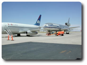 This shows some of the larger (747, DC-10) planes, parked in another area of the airport.