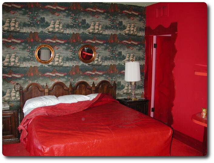 even to the extent of a red leather comforter on the bed! It was heavy!