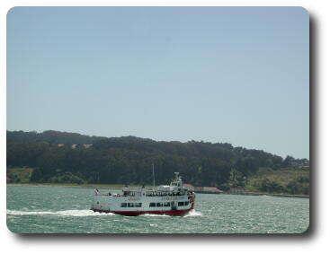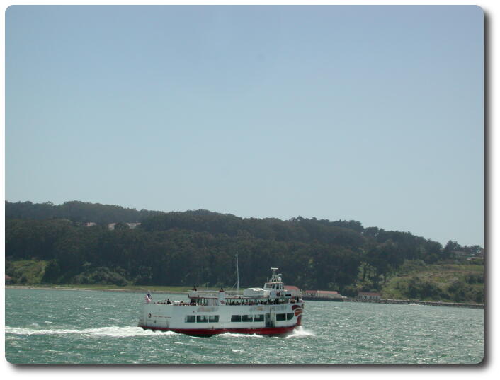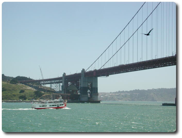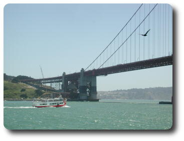 The boat heads towards the Golden Gate Bridge. Along the way it