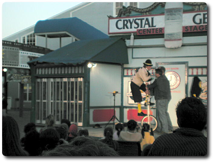 assistants let go of the unicycle. While riding the unicycle,