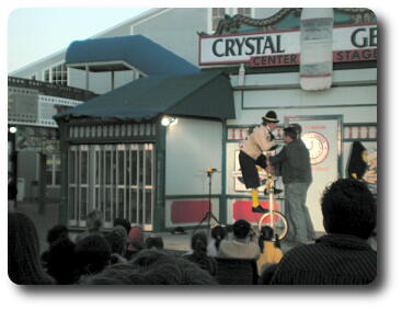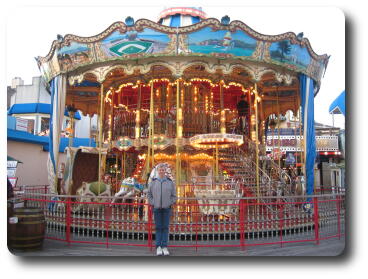 Peter in front of a carousel which appeared to be without