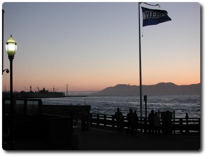 The day has almost ended as the Golden Gate Bridge is fading