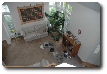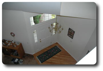 | Living room from top of stairs | Front door area from top of stairs |