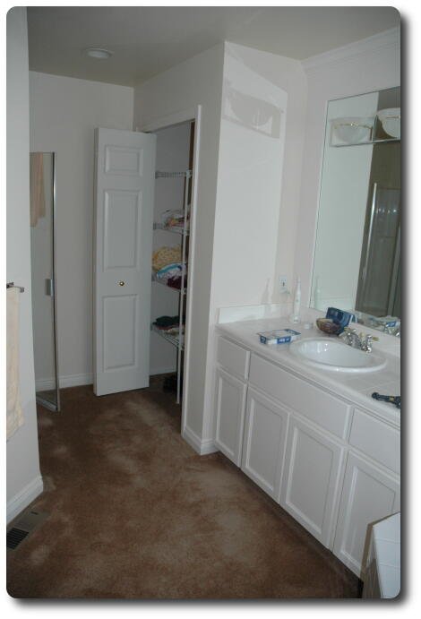 | Shower stall on left. | Master closet |