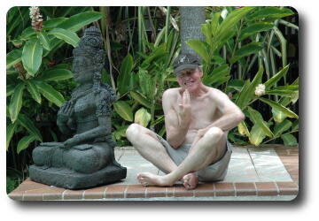 Peter in Balinese mode - the resort has a Balinese theme to the