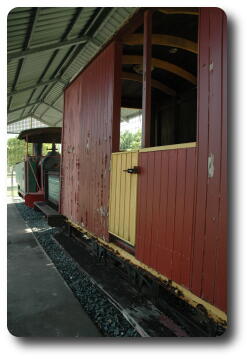 The locomotive, coal tender and one carriage are preserved