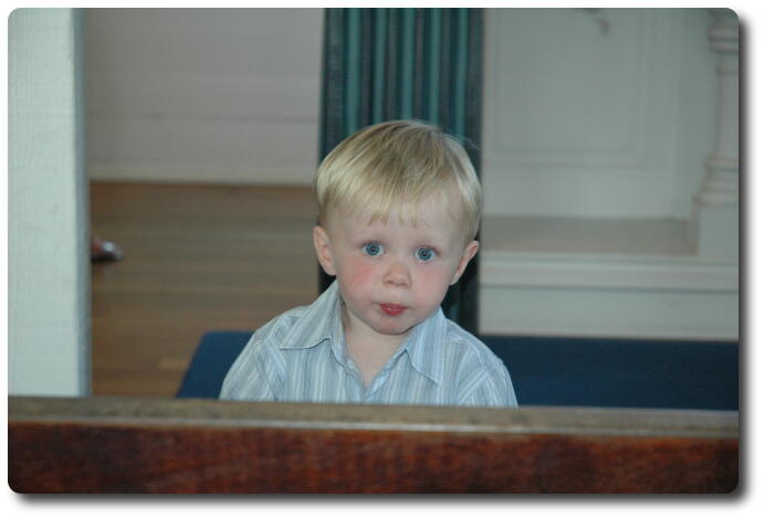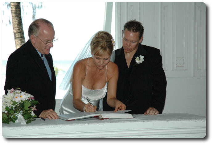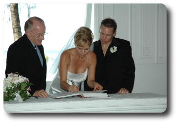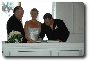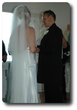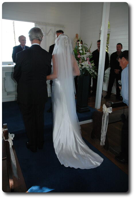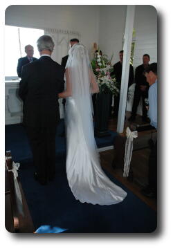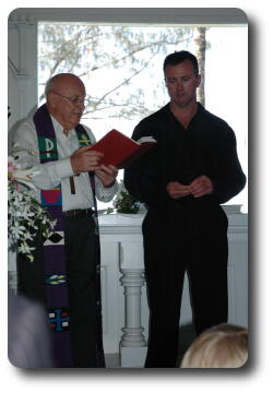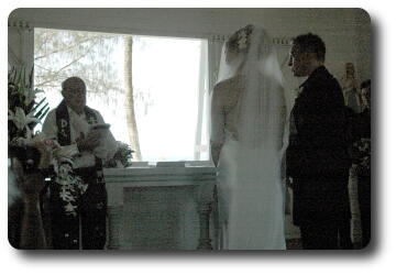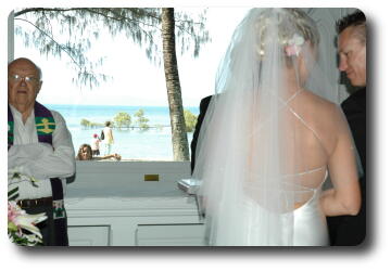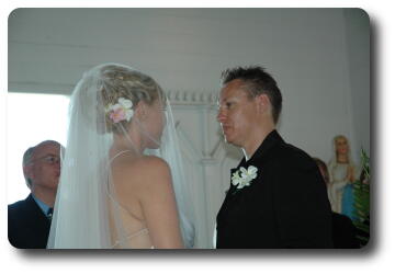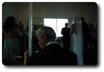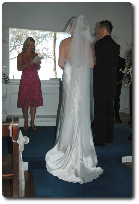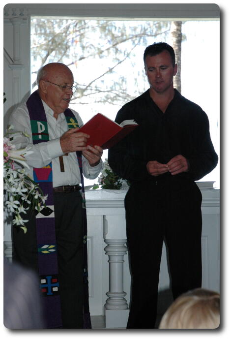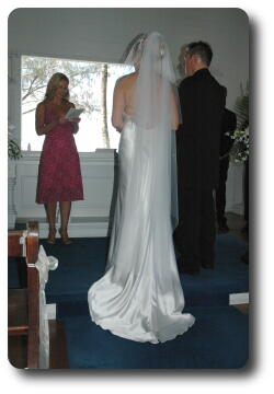 watches on. Wayne Rees, celebrant, is in front of Kelly.