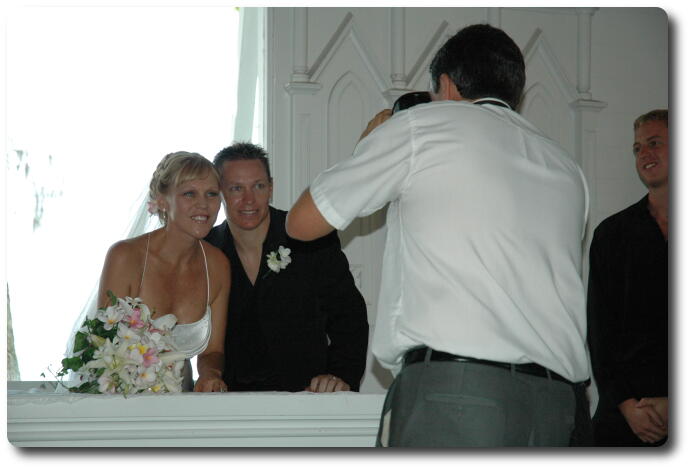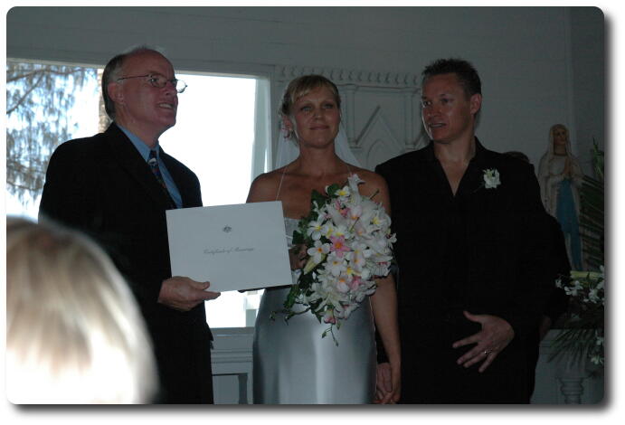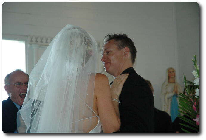 A very happy, and showing it, Wayne Rees telling Glenn to kiss his bride.