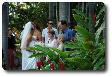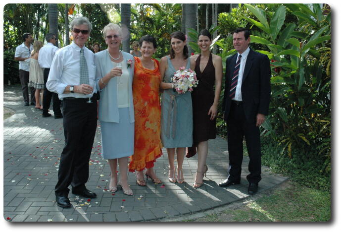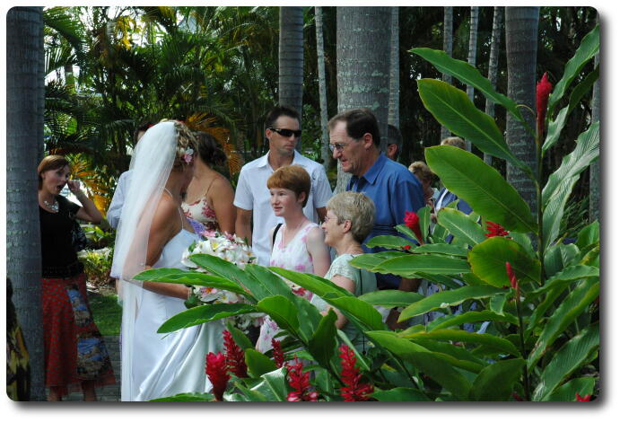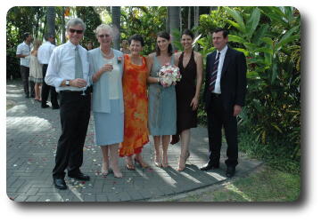 Fortunately, none of us were driving. Well, we didn't have cars, and Port Douglas is small anyway. The only reason to drive would be to have air conditioning! So we were all quite happy to consume the champagne available in Anzac Park after the ceremony, and while the "official" wedding photos were being taken. Then it was onto the reception.