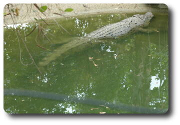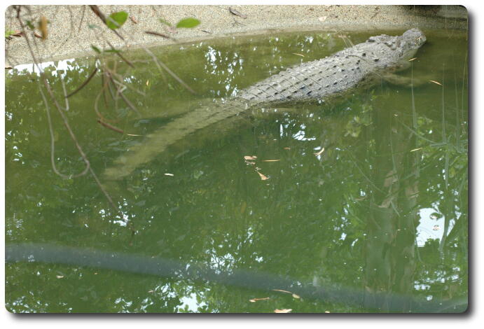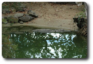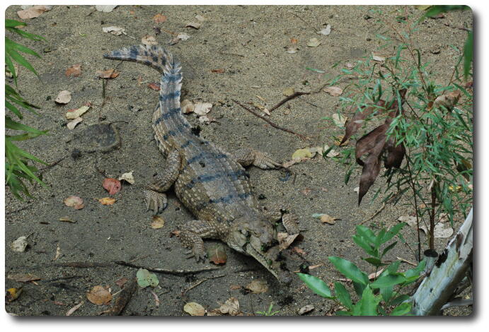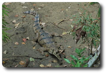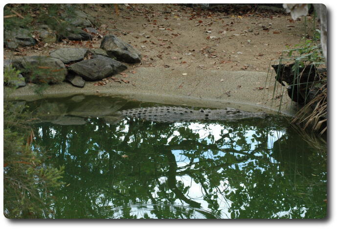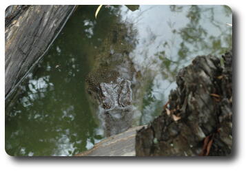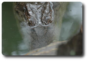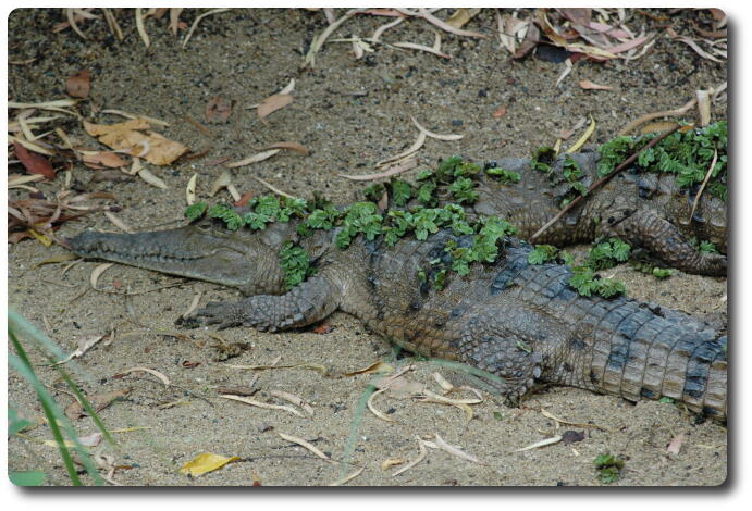 These two crocodiiles had been swimming in the pond, and caught some weed,