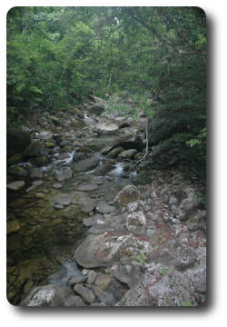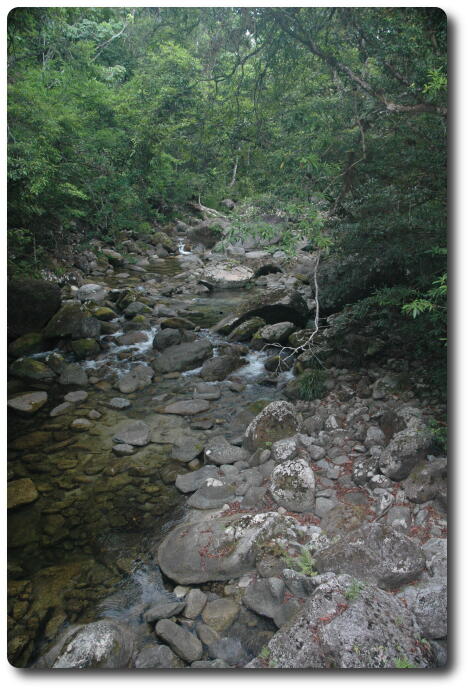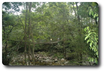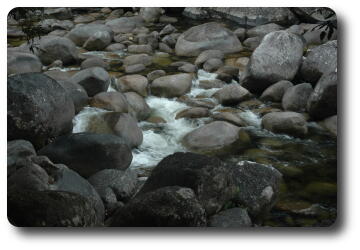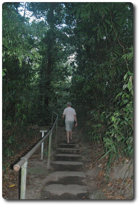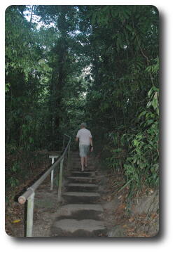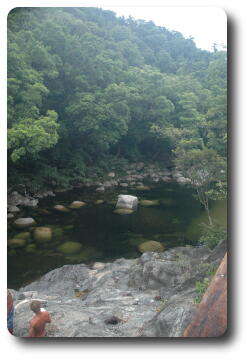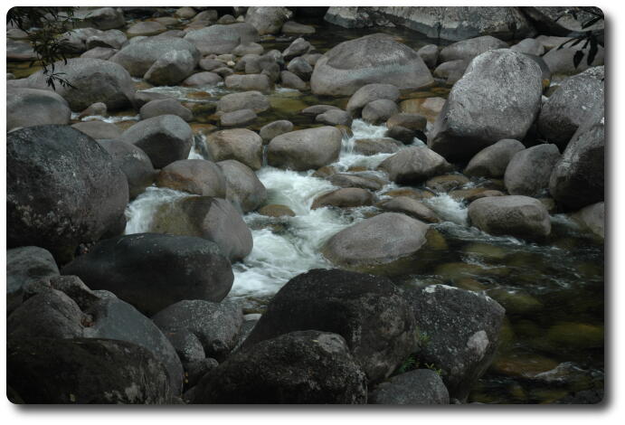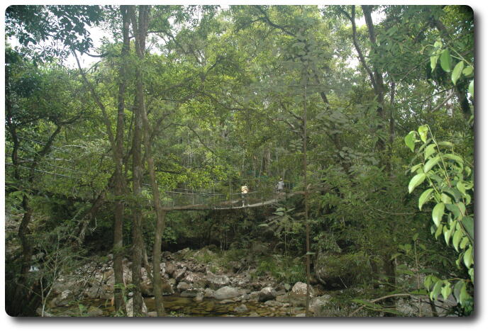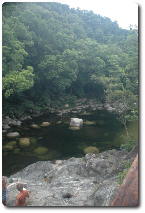 After lunch, we said our farewells to Kelly and Glenn, and ran the gauntlet of the water pipe repair crew on the beach road and headed back to Port Douglas. Peter and I dropped off Yvonne and Keiran and then continued on to Mossman, the town for which Port Douglas was the official sea port. Heading inland from Mossman, which still has a major sugar refinery (but now its own wharf), the road leads to Mossman Gorge, and its National Park, a map of which is also available. This area is part of the Daintree National Park, which is one of the few, if not the only, tropical rainforest which extends to the ocean shore (although not just here, but a bit further north).