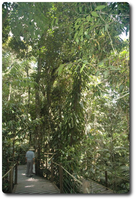 Red Peak station has a boardwalk which allows walking through the tropical rainforest, without actually touching the ground. The walk is a circular track leading back to the Skyrail station, with display boards along the way illustrating various aspects of the environment.