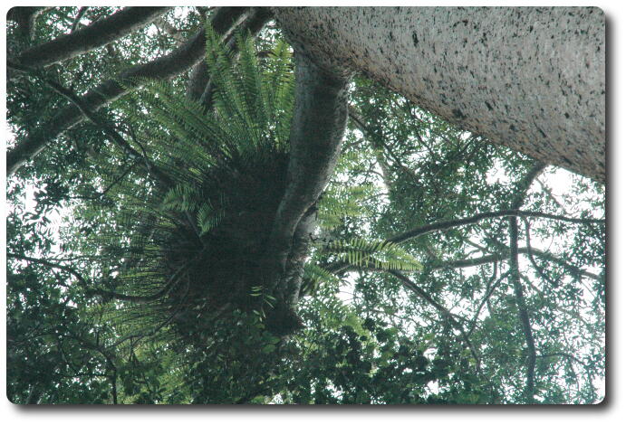 Looking UP the trunk of this Kauri Pine. Note that there are no lower