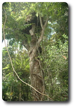 The major theme of this area is the "fight for light". With as little as 1% of the sunlight falling on the canopy reaching down to the forest floor, plants have developed various mechanisms to reach the light.