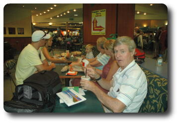 Lunch at the airport. Left to right: Glenn, Michelle, Flynn, Yvonne, Kelly and Peter.