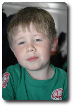 Jake "trying" to go to sleep in his Dad's arms.