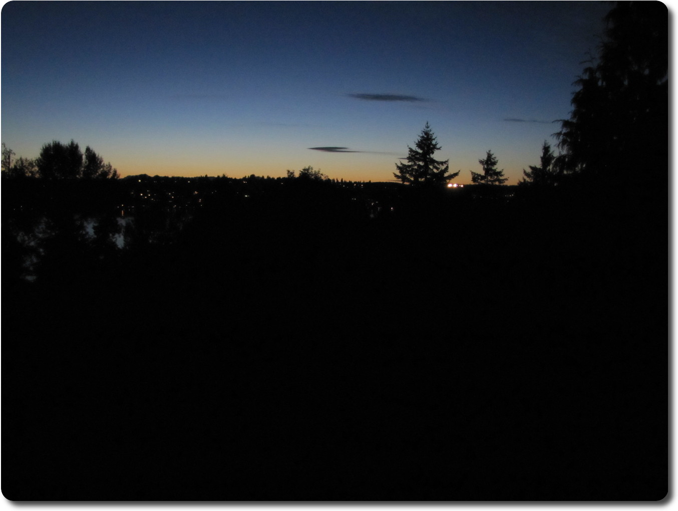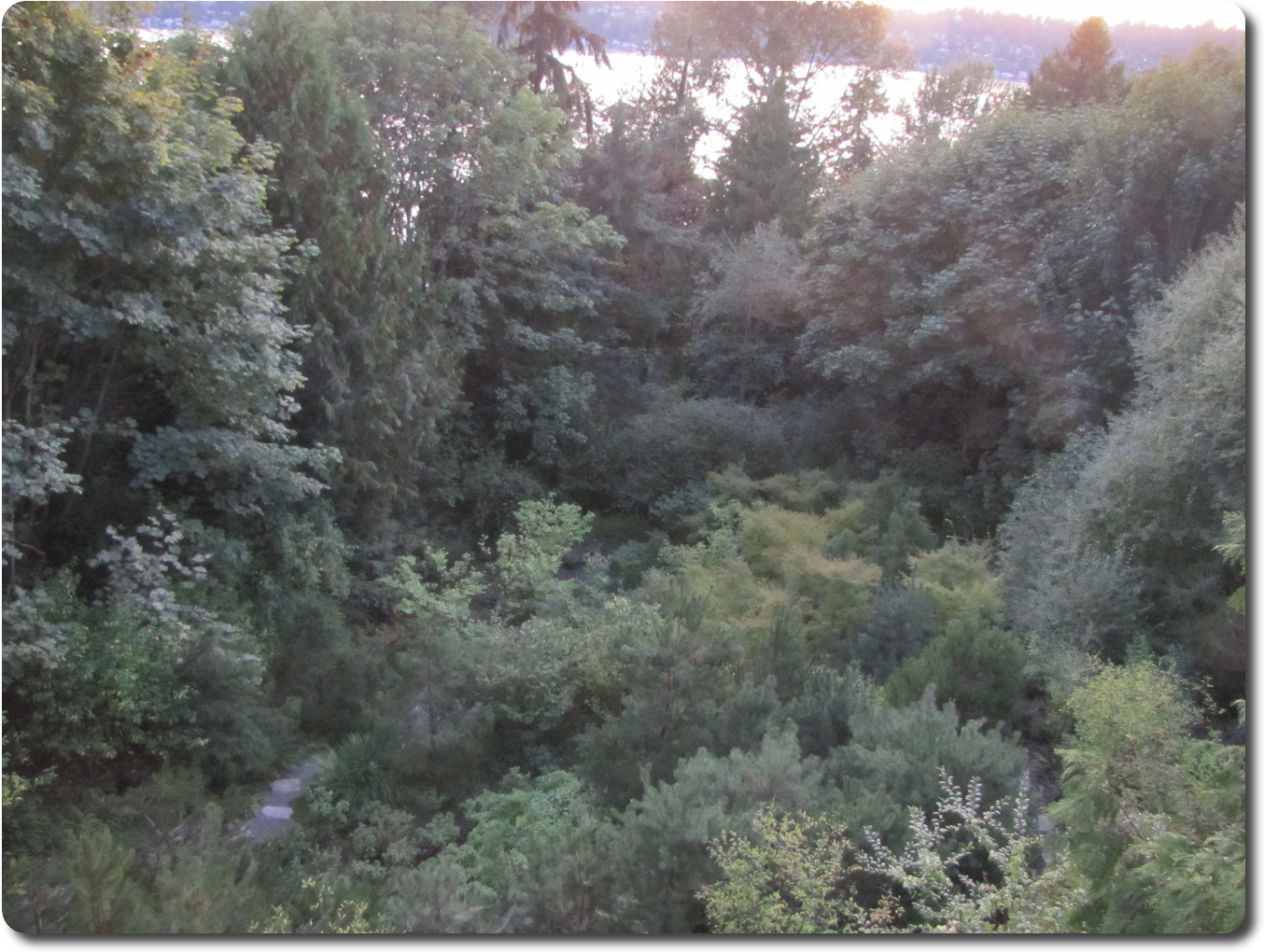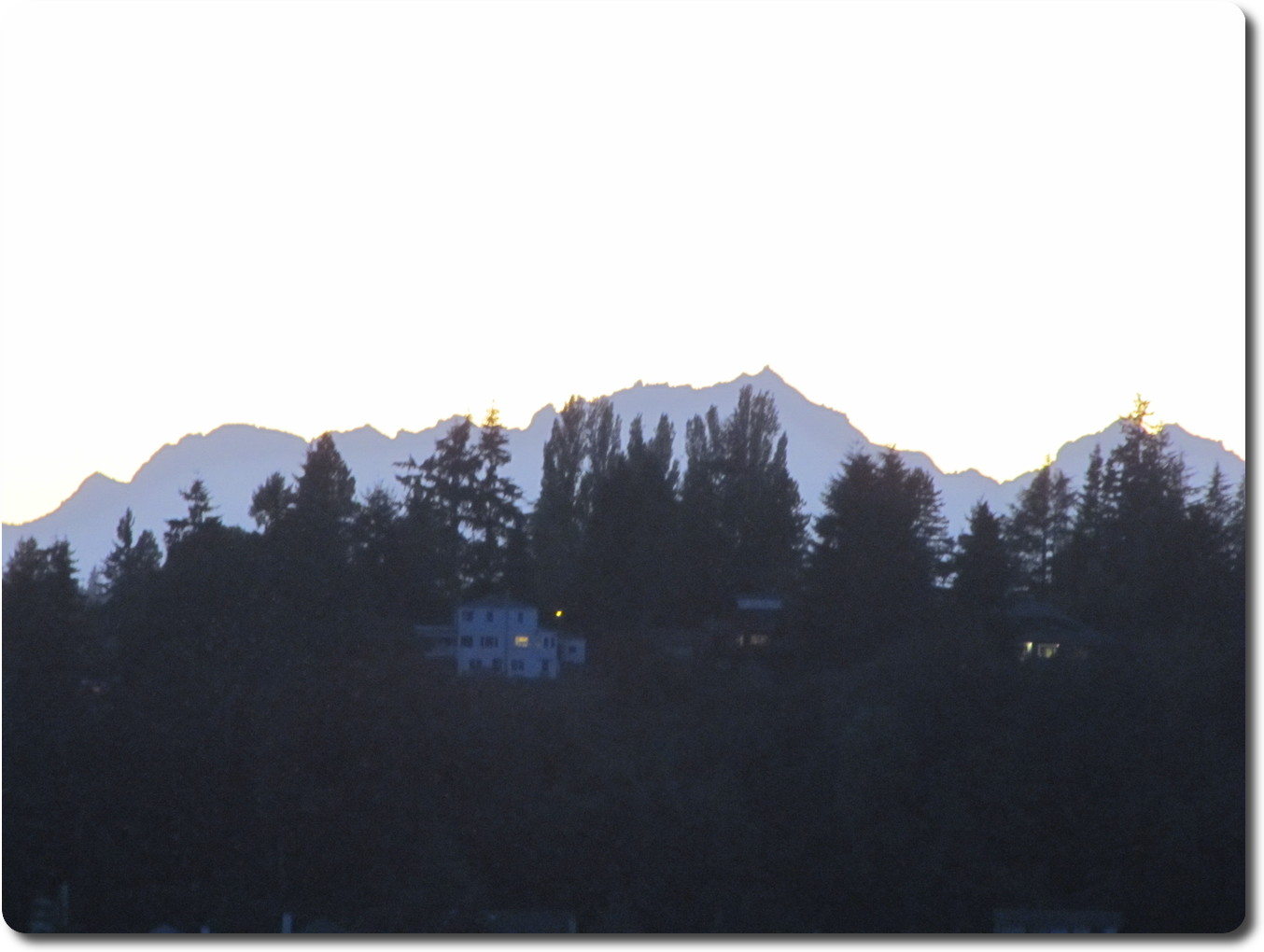 the other side of Puget Sound. The darker mountins and trees are across Lake