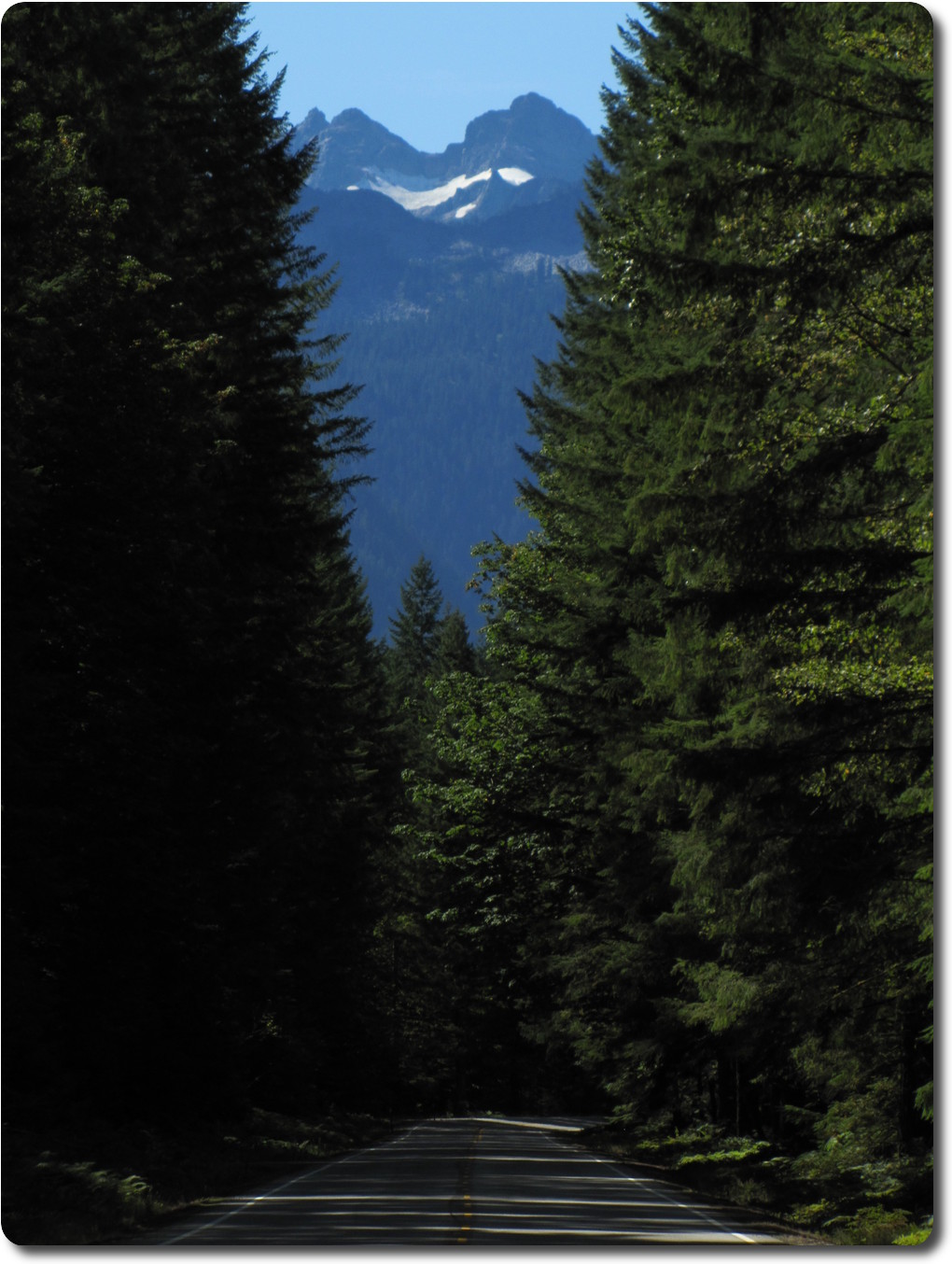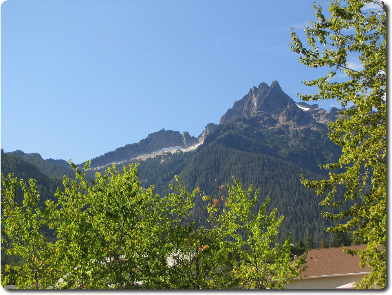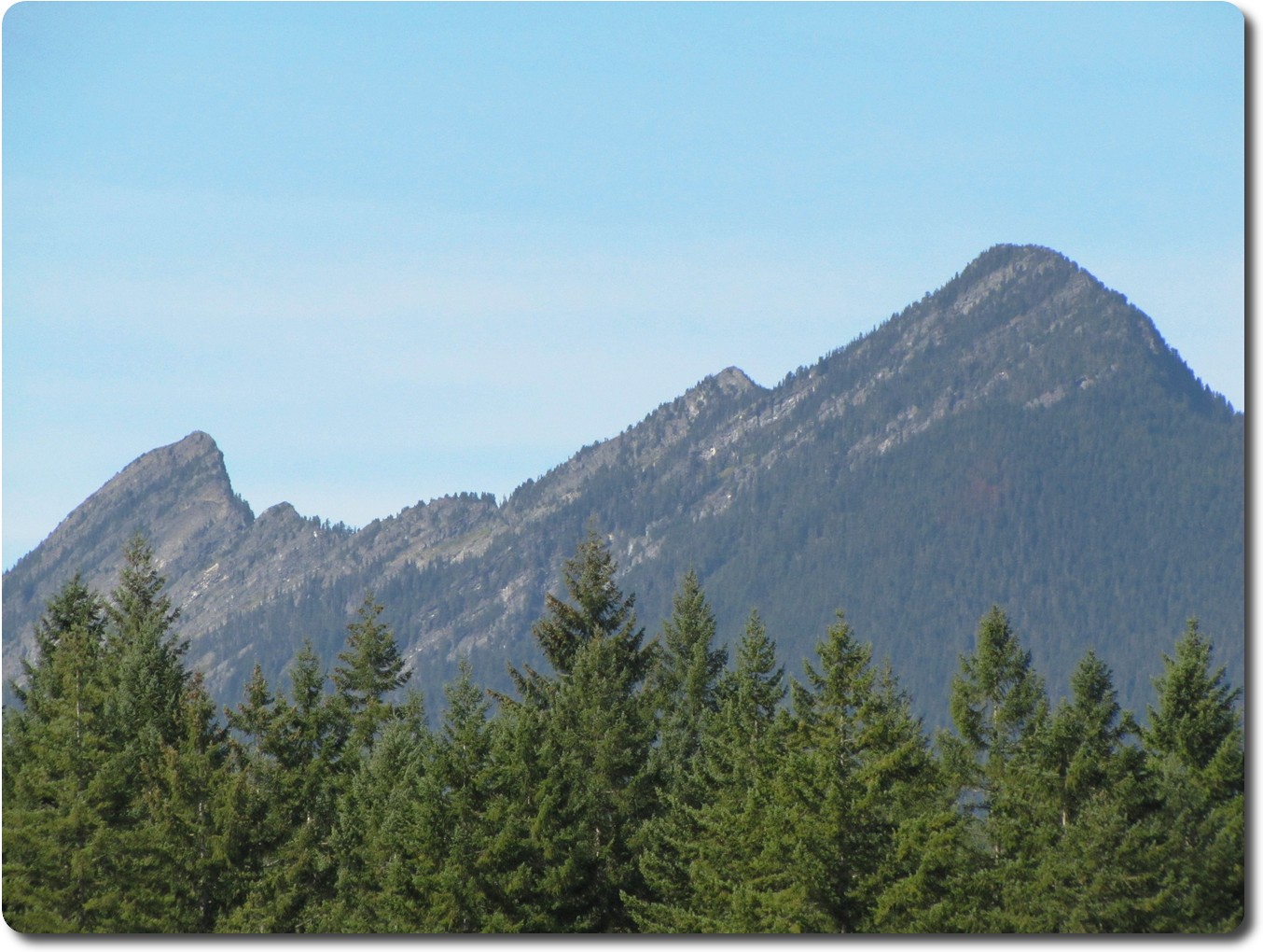 A closer view of the jagged peaks which are located north of the Stillaguamish River