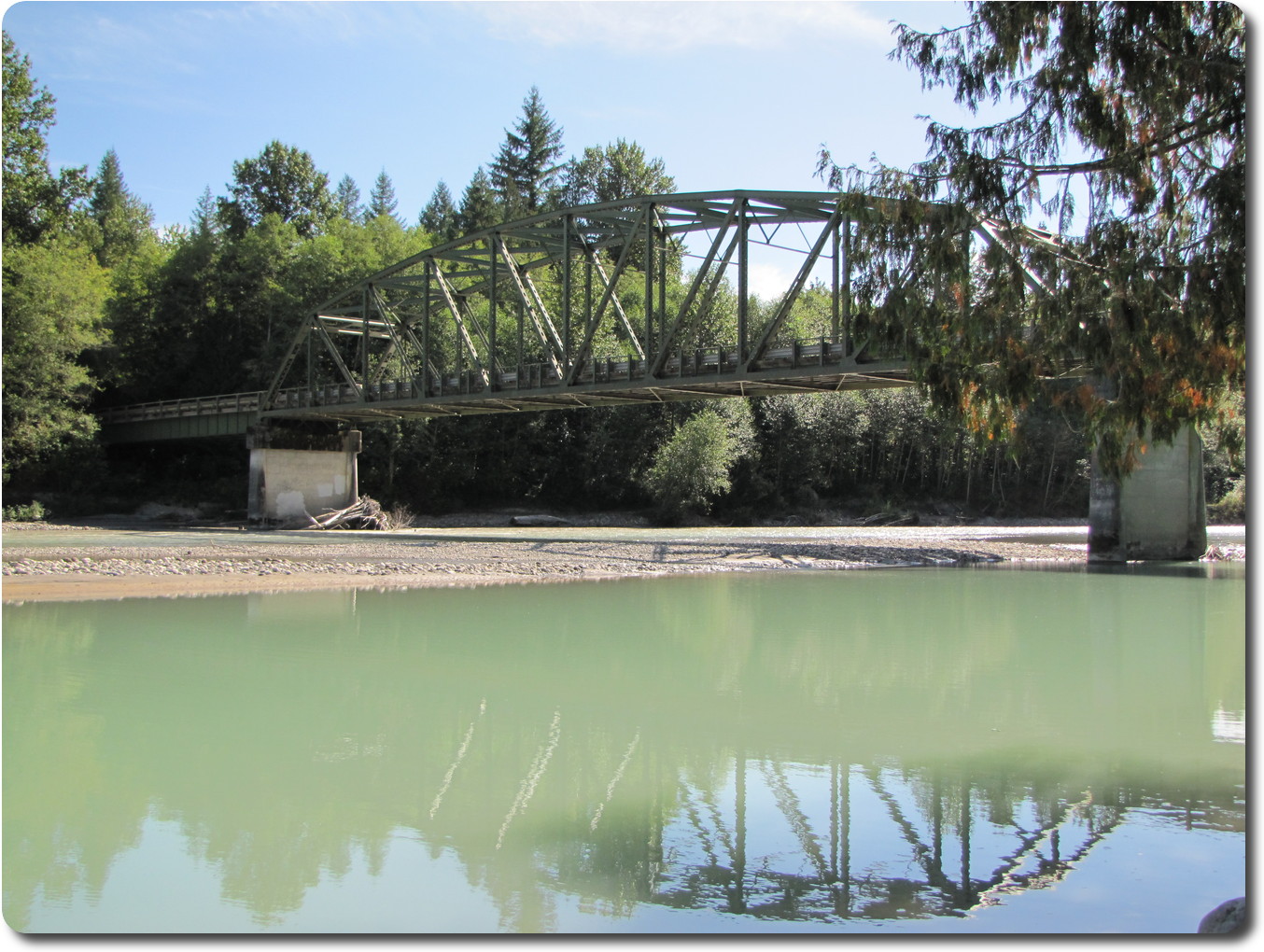 This bridge carries SR-530 across the Sauk River, which enters from the