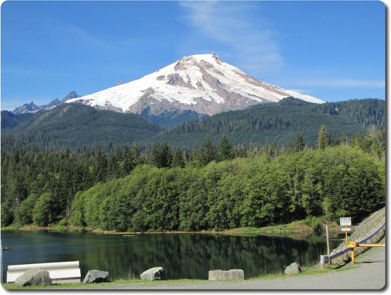Lake behind it. This is Mt. Baker, after which the river and lake are named.