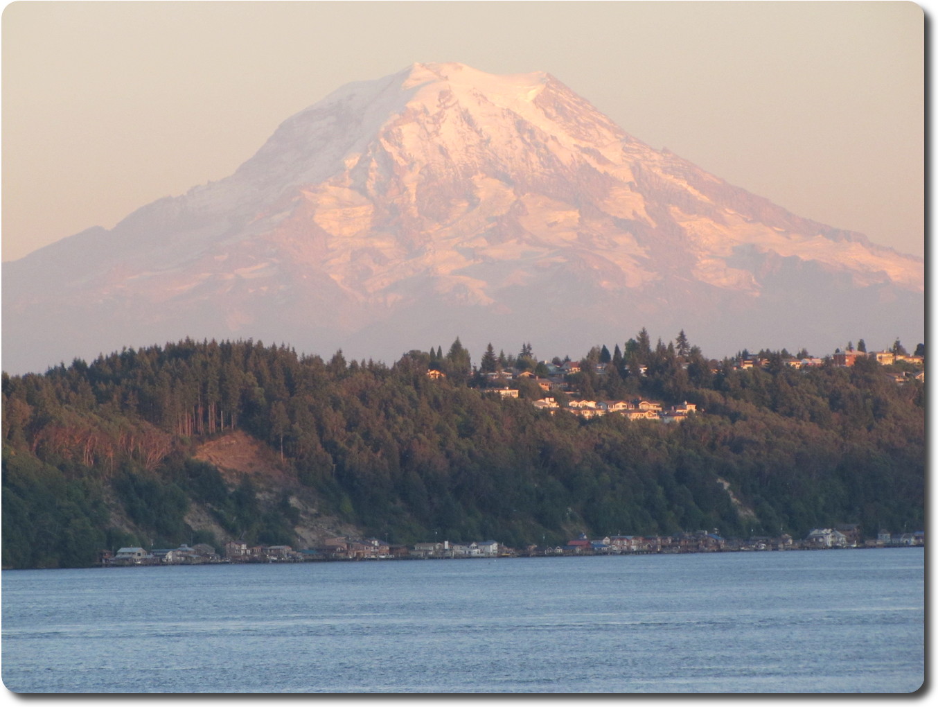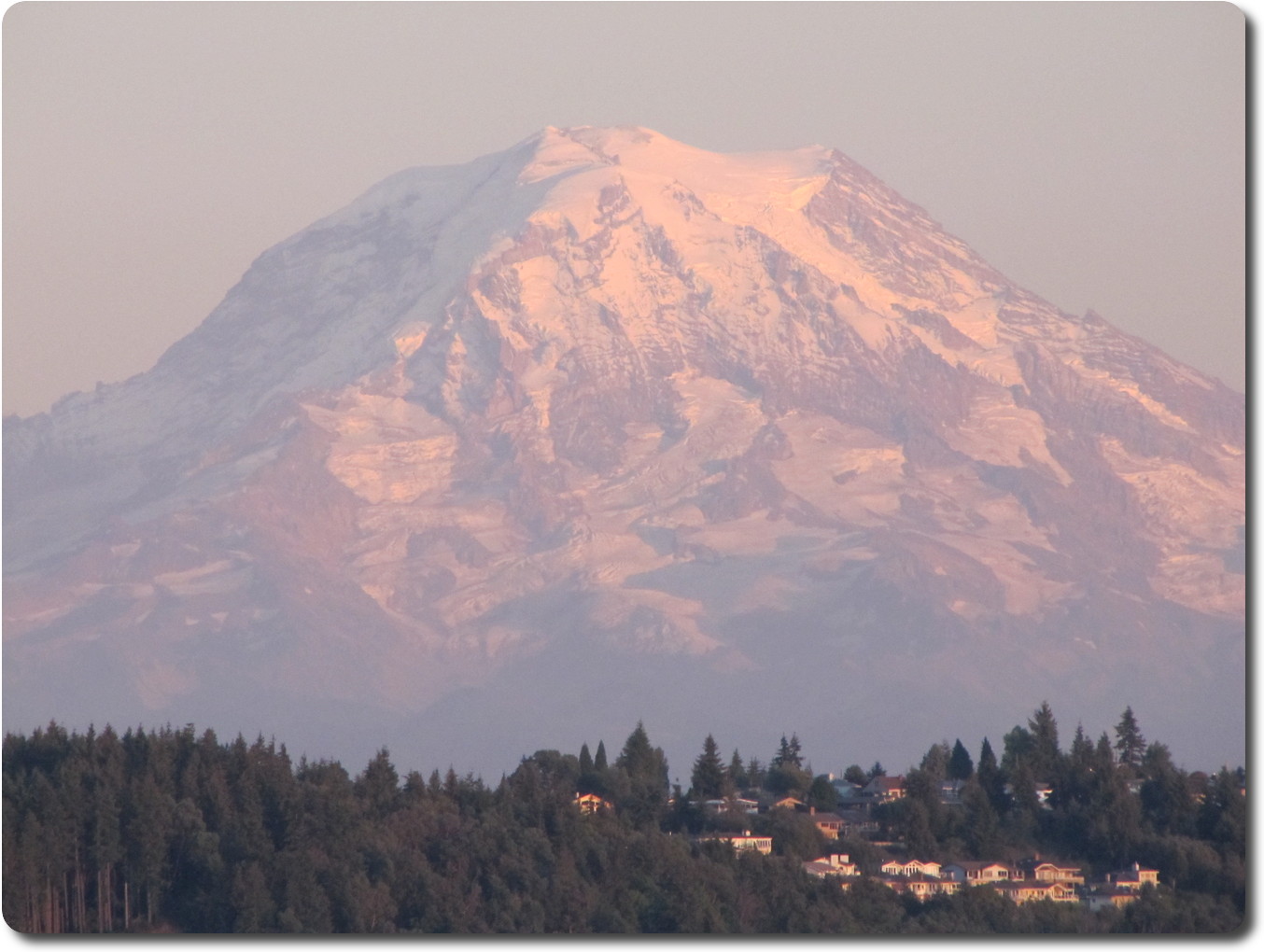 As the day is winding down, Mt. Rainier is turning evening pink.