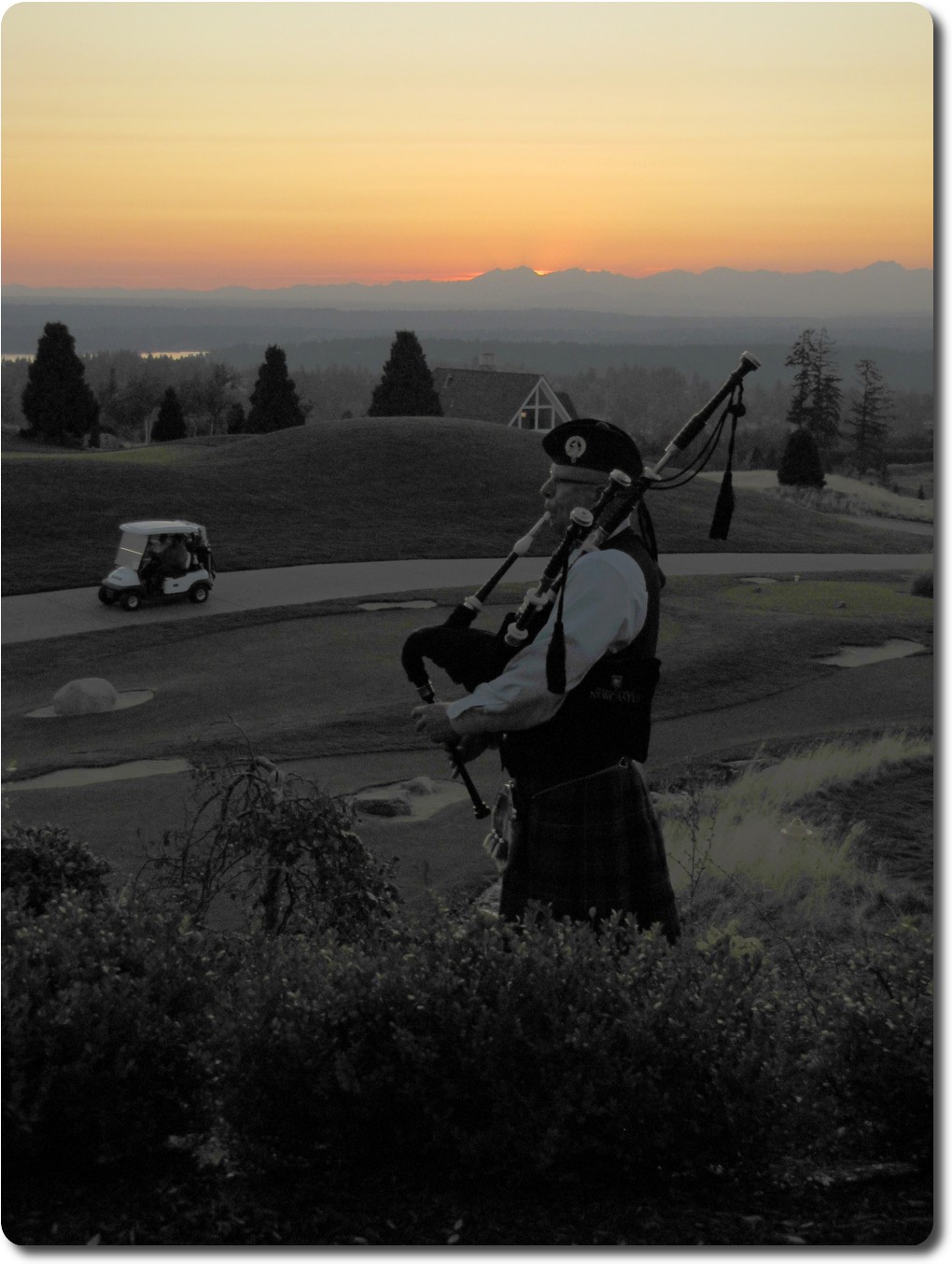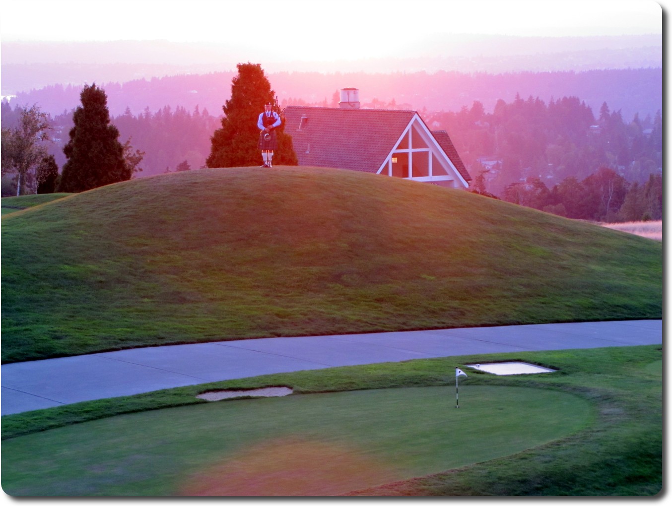 farewell the day. He appears on this hill in front of the club house,