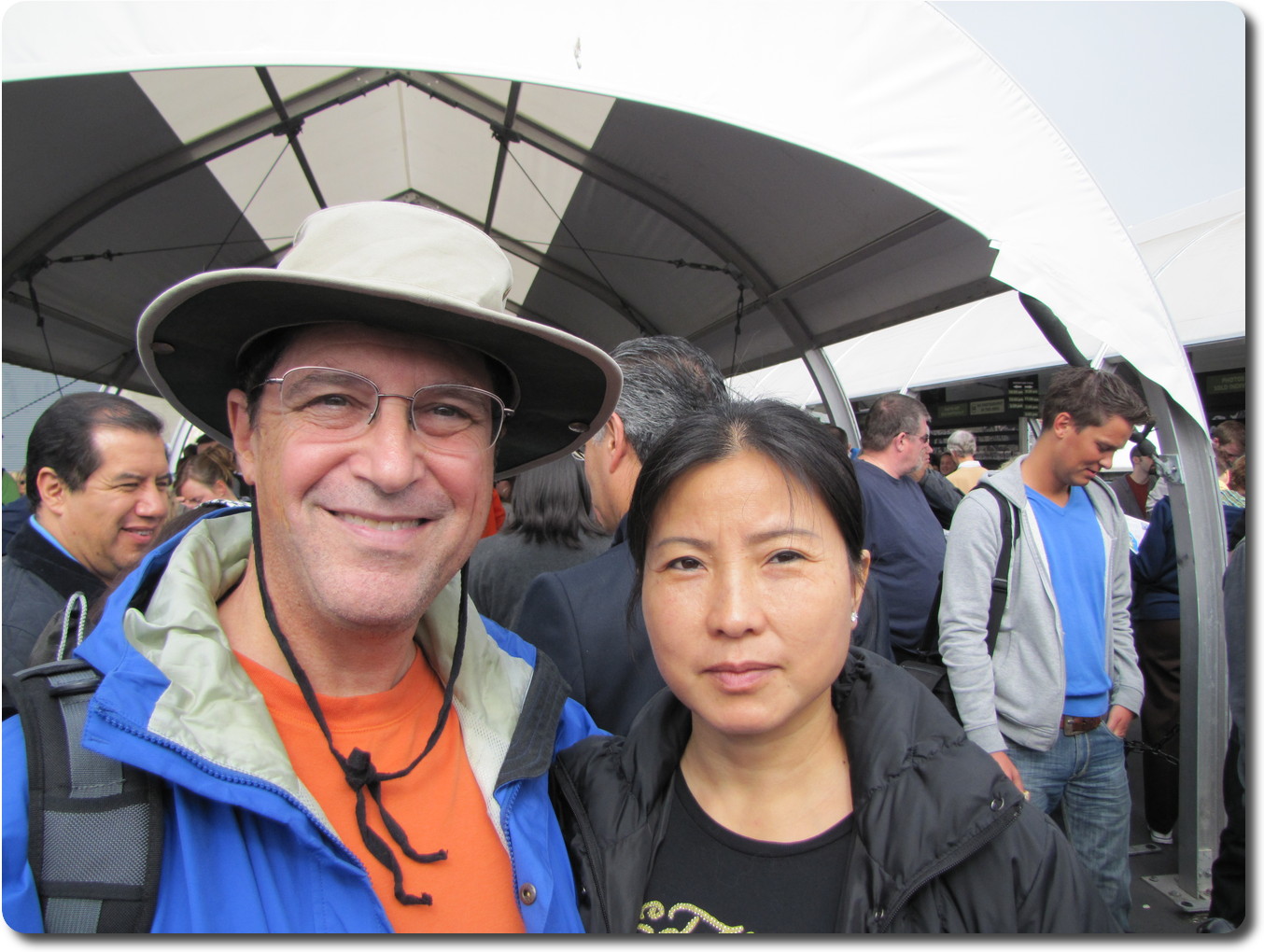 Hosts Jeffrey and Peggy waiting to board the 11AM boat.