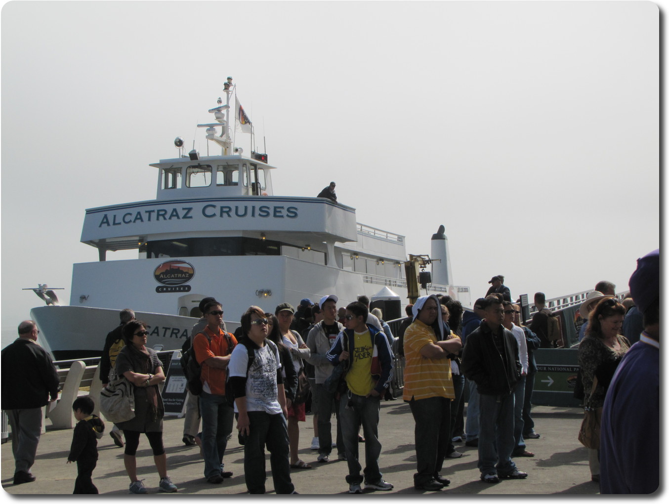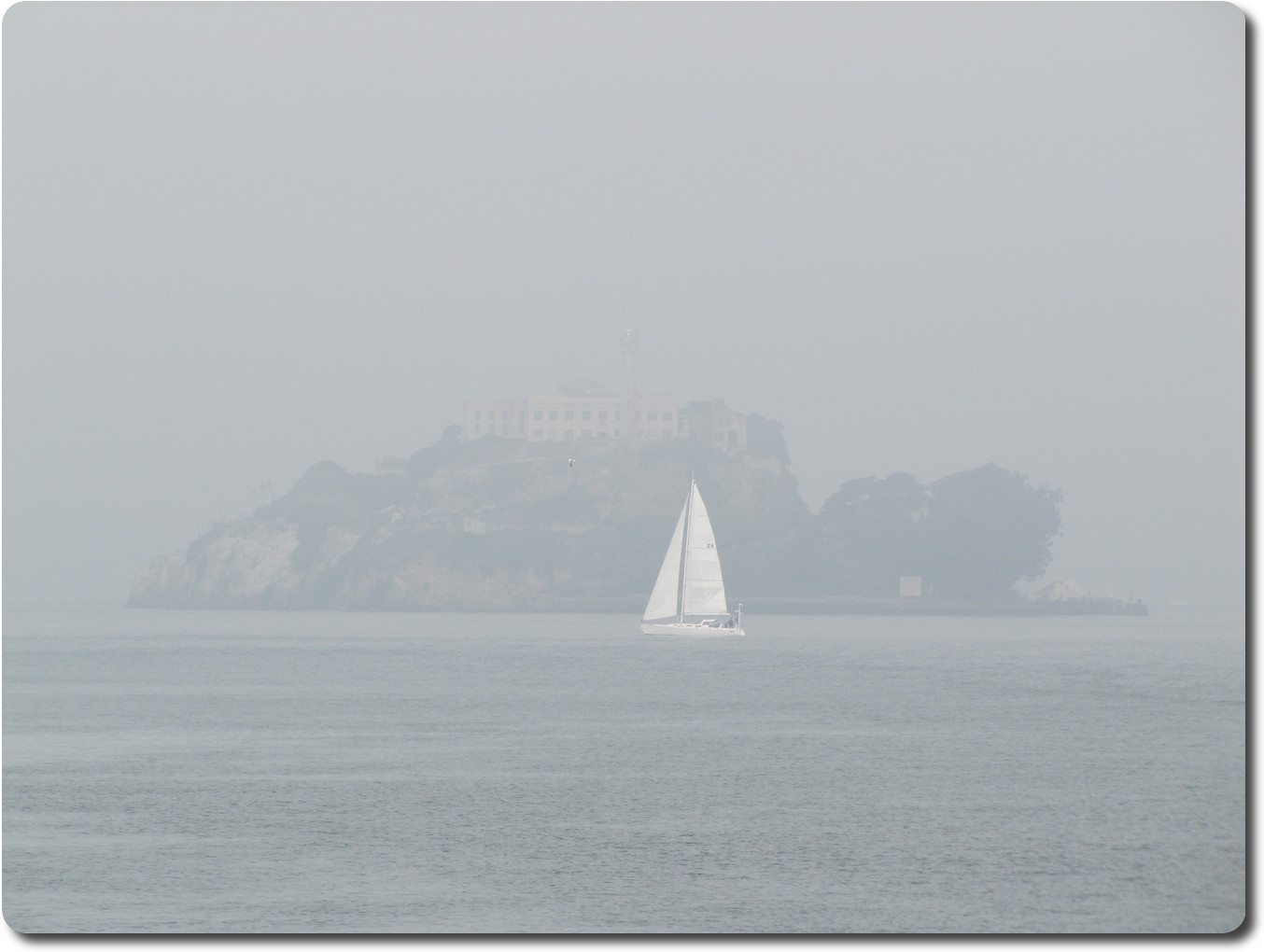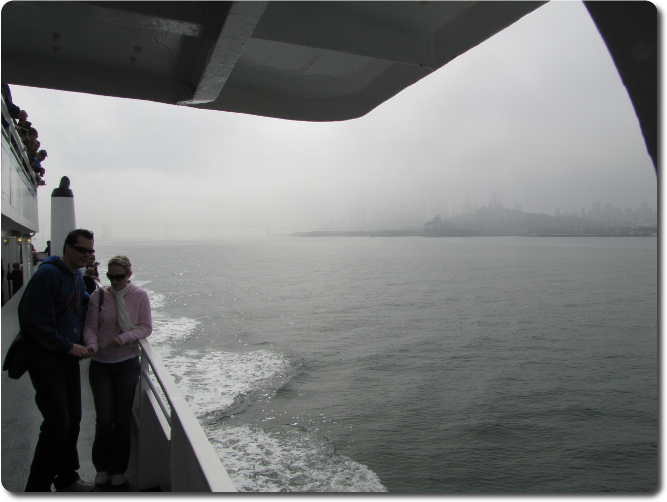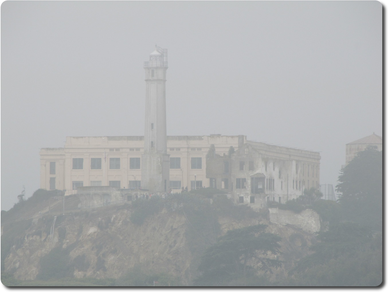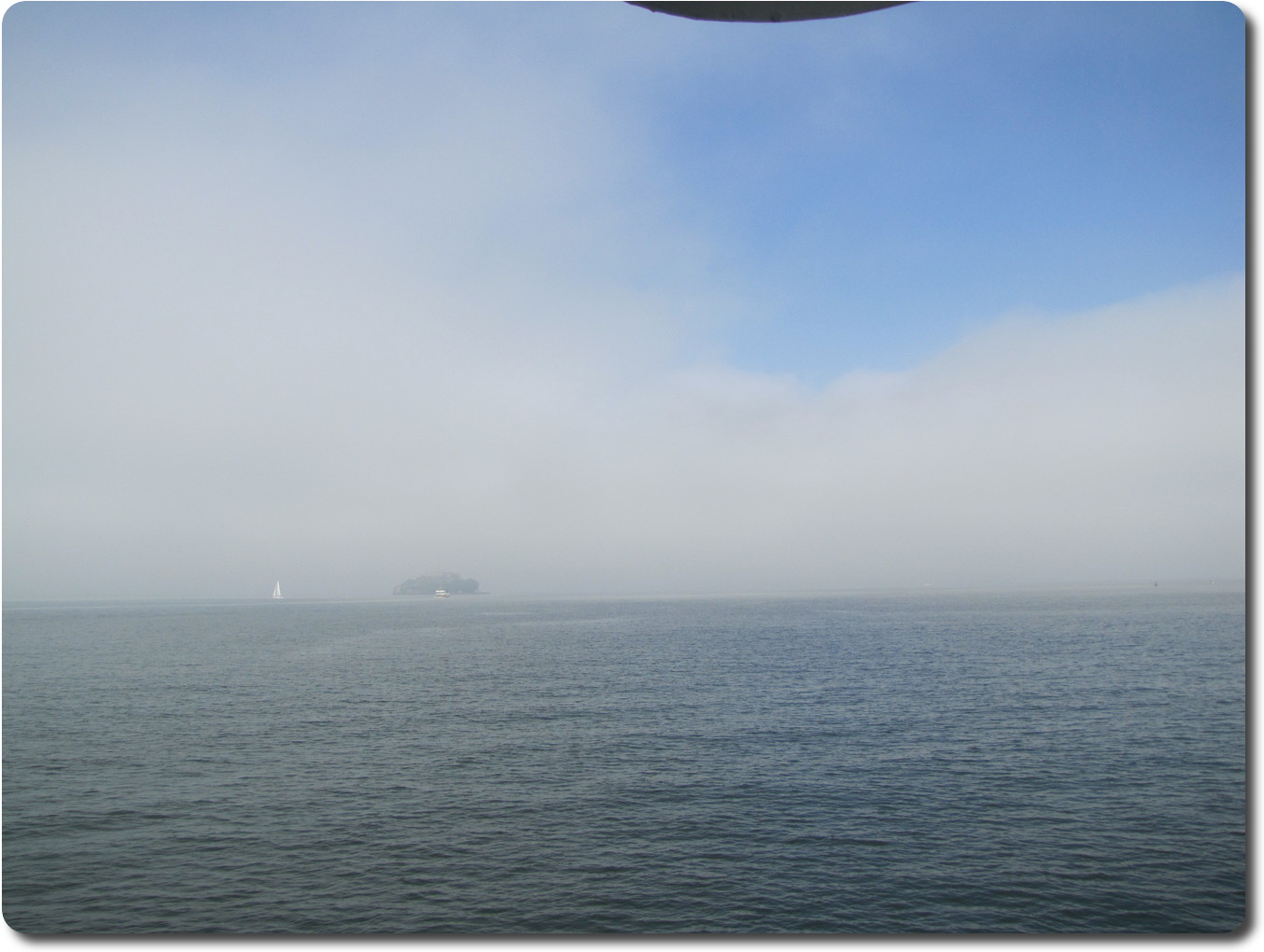 Our destination - Alcatraz shrouded in fog. It appears the locals