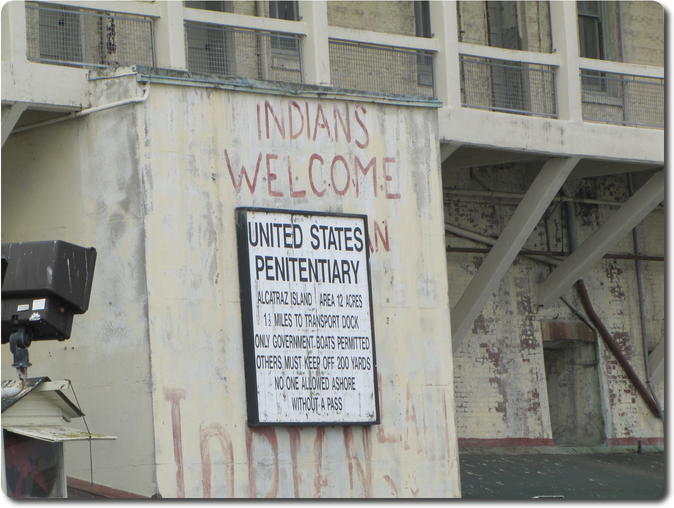"Indians Welcome" sign from the occupation of 1969 - 1971 by