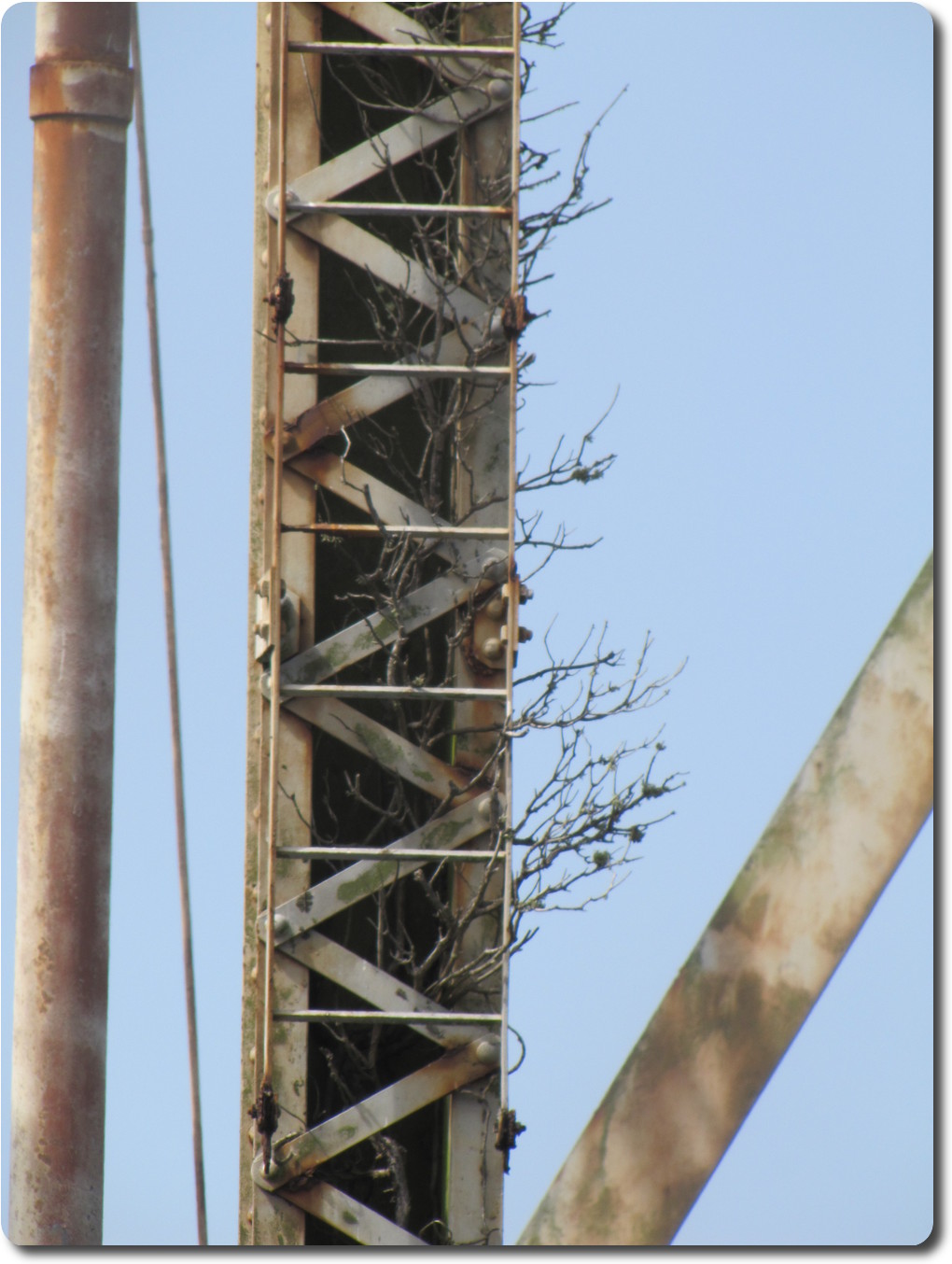 This is a closeup view of one of the legs of the water tower.