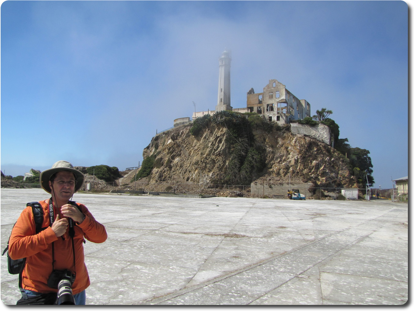 this time with the fog shrouded Golden Gate bridge behind.