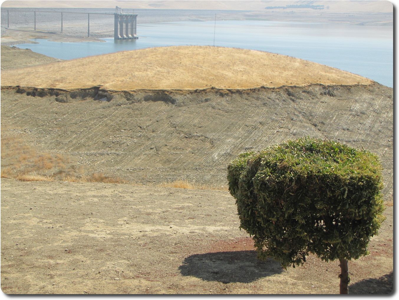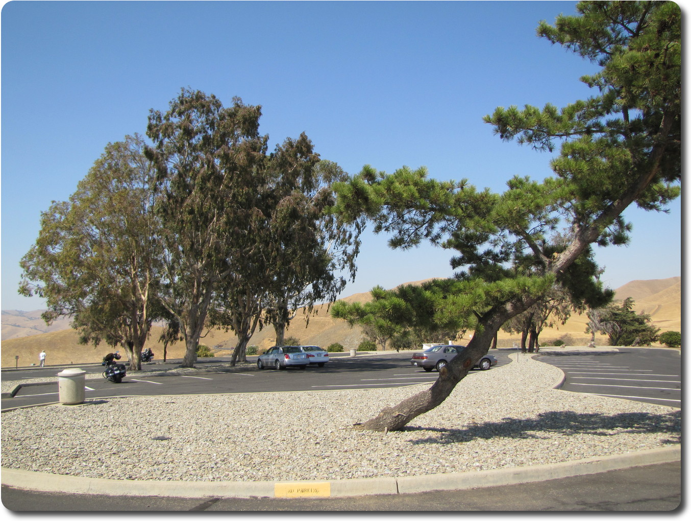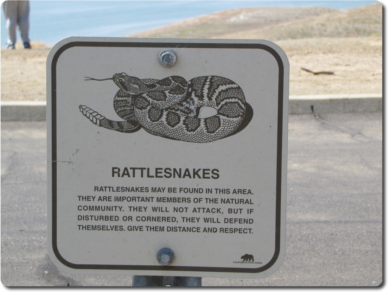 We pulled into the San Luis Dam parking lot, as seen in the left photo above, and observe the warning about rattlesnakes. OK, I can take a hint. Despite that, we didn't see one. Well, the sign does say may be found in the area.