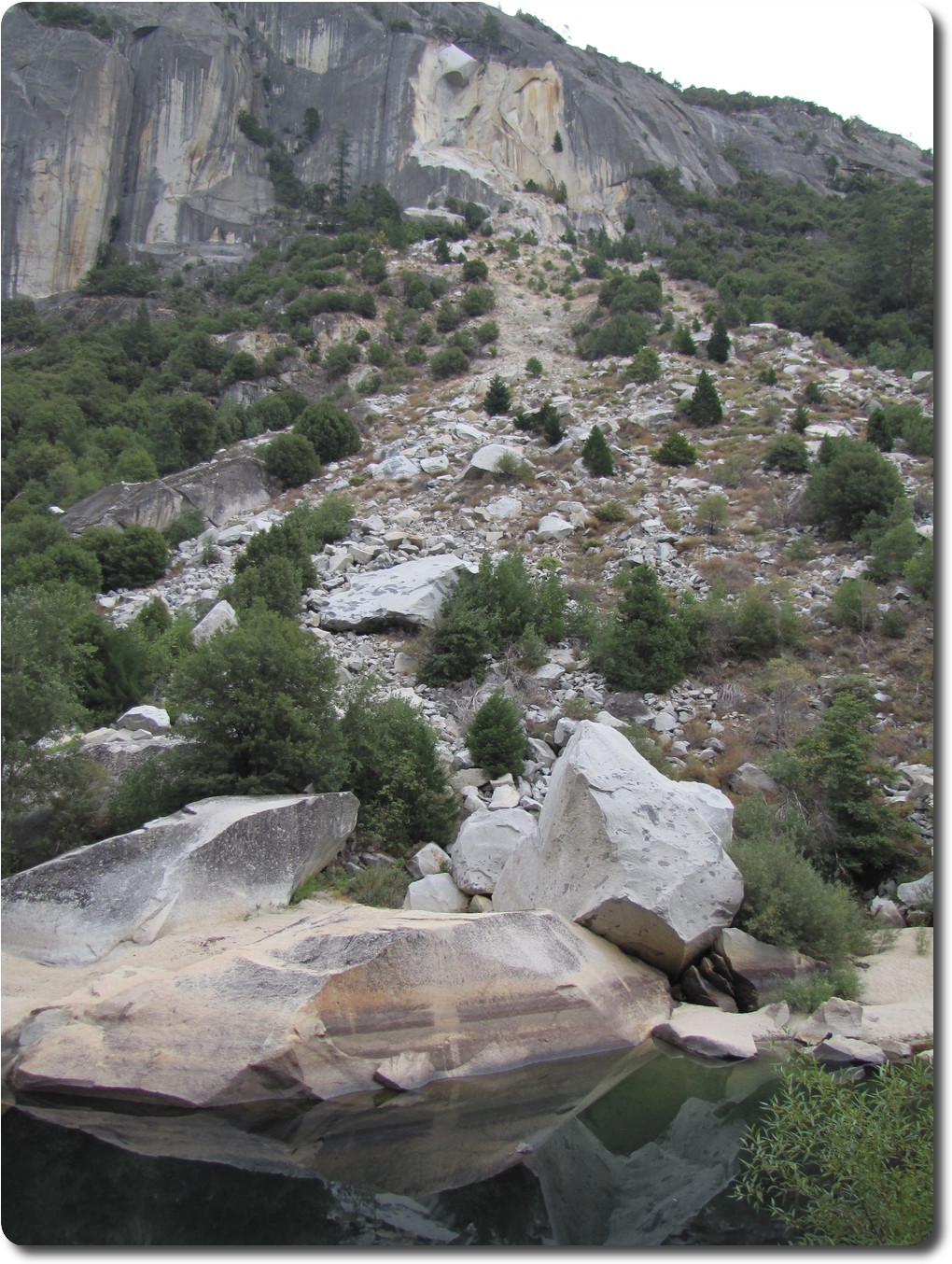 other boulders and debris leading back to the cliff.