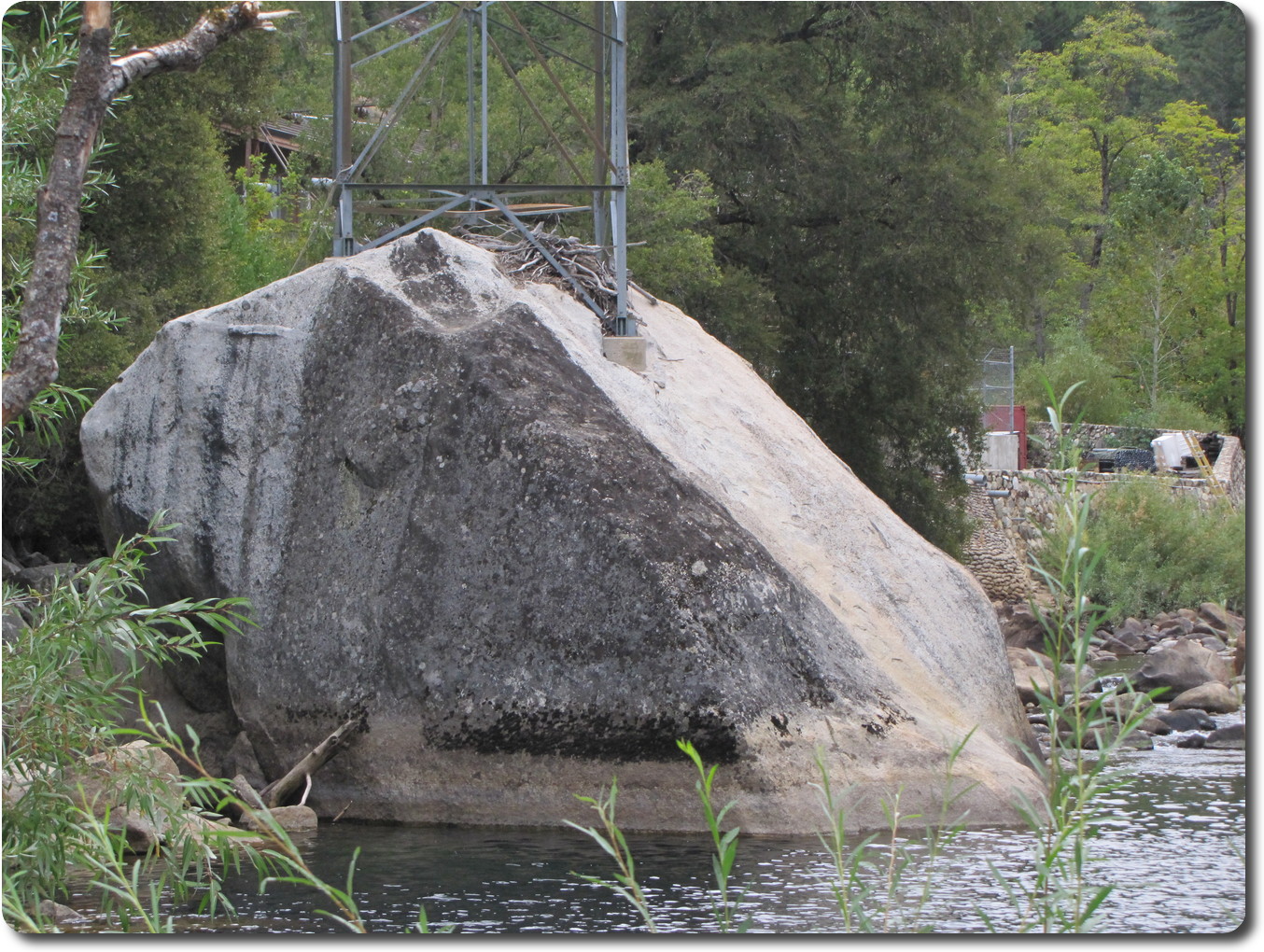 washed down during Spring floods. Note the electricity pylon on the boulder