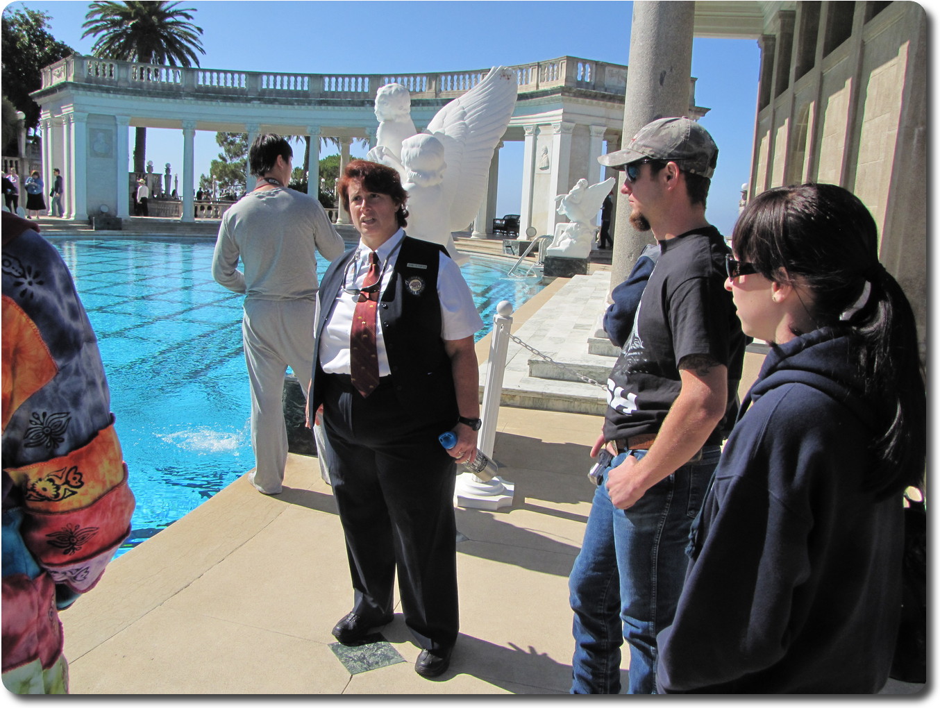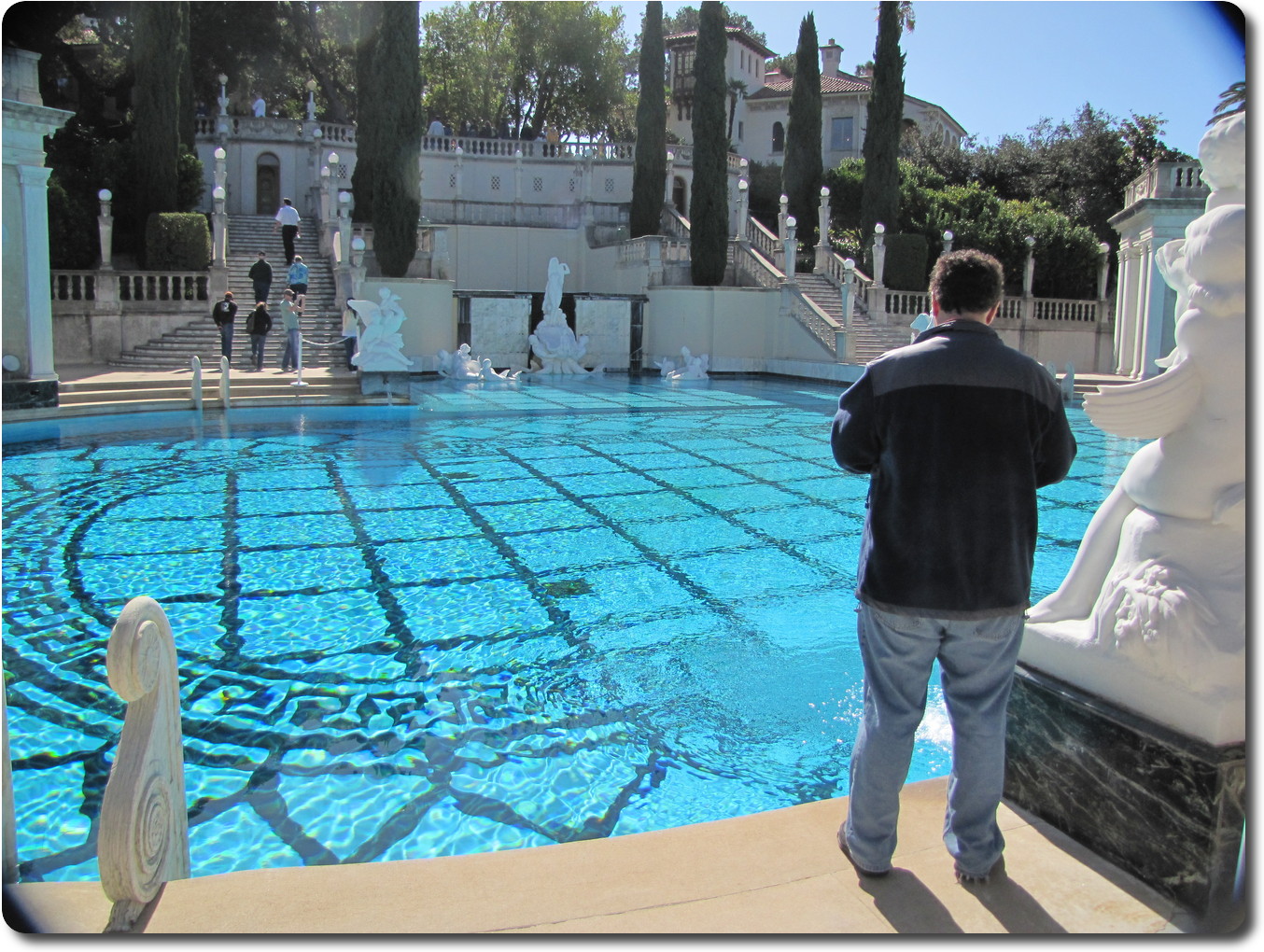You can't see the pool, but it is in front of the white marble facade you can see.