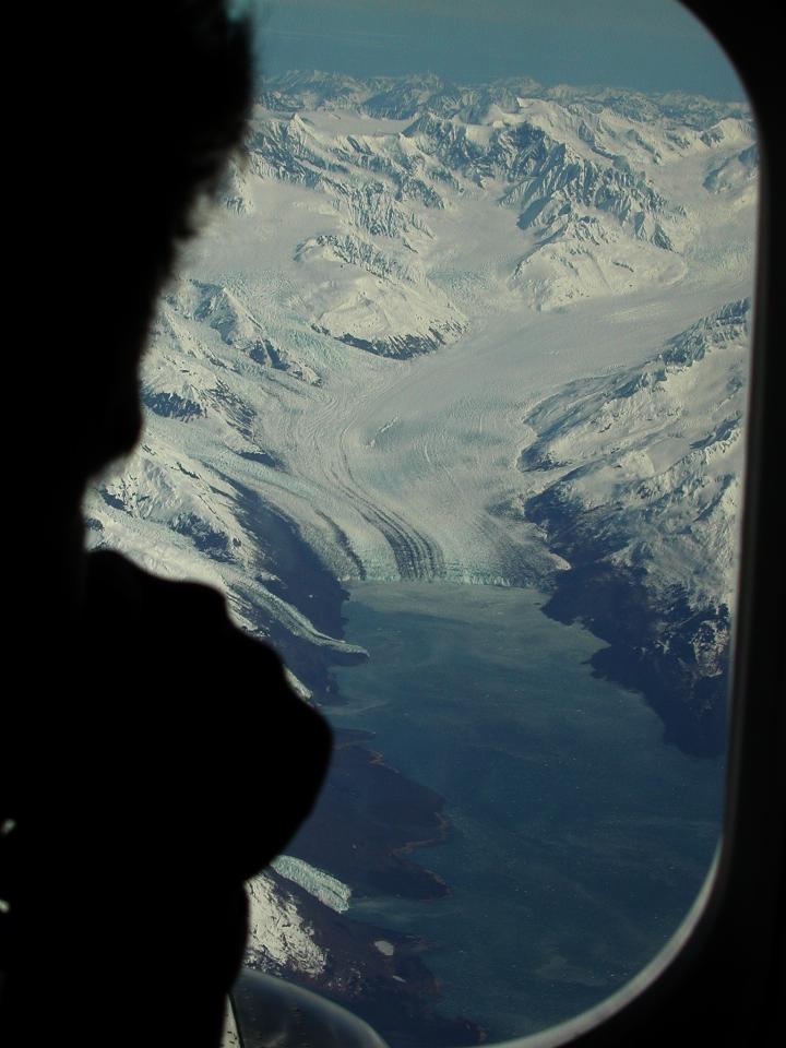 Many Alaska Airlines pilots take pleasure in describing the scenery along the way. And fortunately Kelly and I were on the side of the plane with the great scenery - glaciers! Alas, neither of us had a window seat.