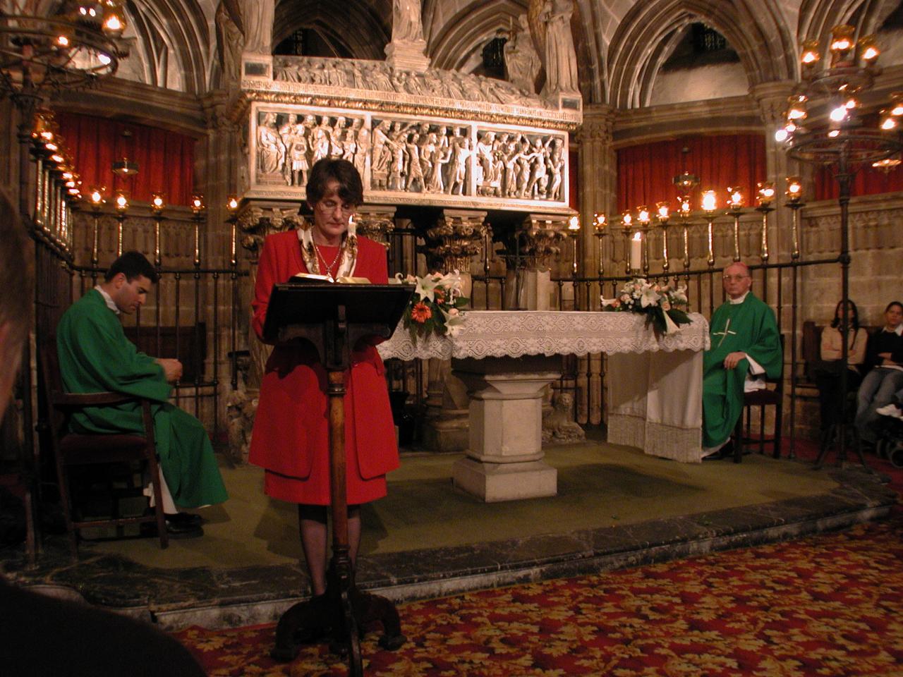 Father Mark and Bishop Geoffrey during Mass, in front of the remains of the enigmatic St. Eulalia.