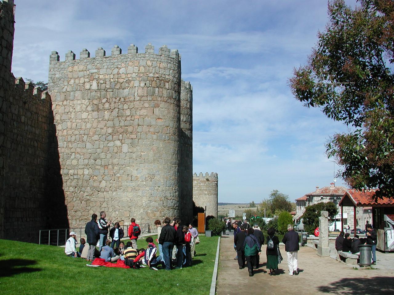 Group N walking back towards the bus, outside the walls of the old city, and providing some sense of scale to the walls.