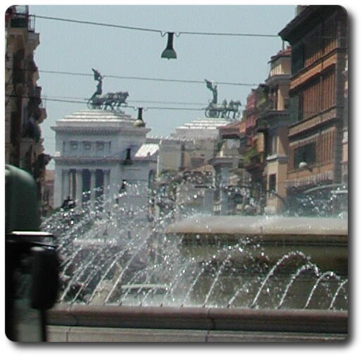 Looking down Via Nazionale towards Victor Emmanuel Monument, just visible over the fountain, although better seen here.