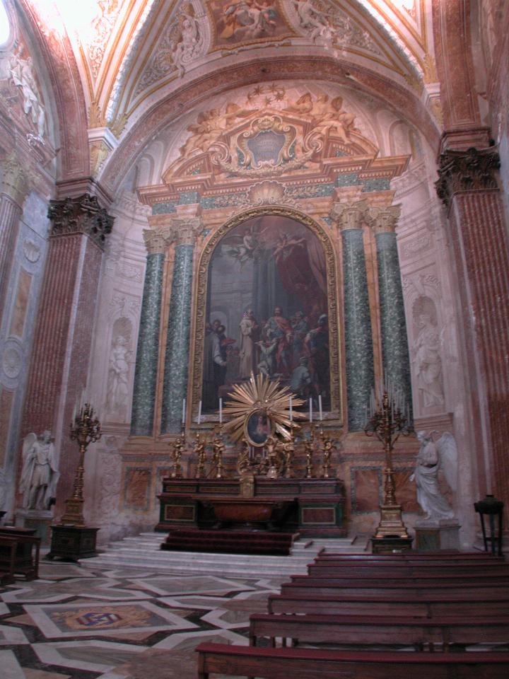 The chapel of Blessed Niccolo Albergati, a Carthusian Monk beatified by Pope Benedict XIV in 1744. This chapel was designed by Clements Orlandi in 1746. It is directly opposite the Chapel of St. Bruno (above). The roped off area in front is the Great Meridian line. These (other churches had them too) served three purposes: