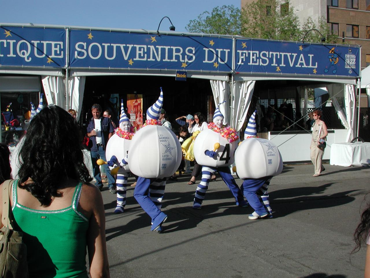 At 5:30PM every day during the Festival, the Lotto Quebec Parade started from Scene Bell, through Place des Arts to Boulevard de Maisonneuve (roughly south to north). It winds its way through the crowd, which is both a challenge to the parade, and to somebody wishing to see (and especially photograph) the parade.