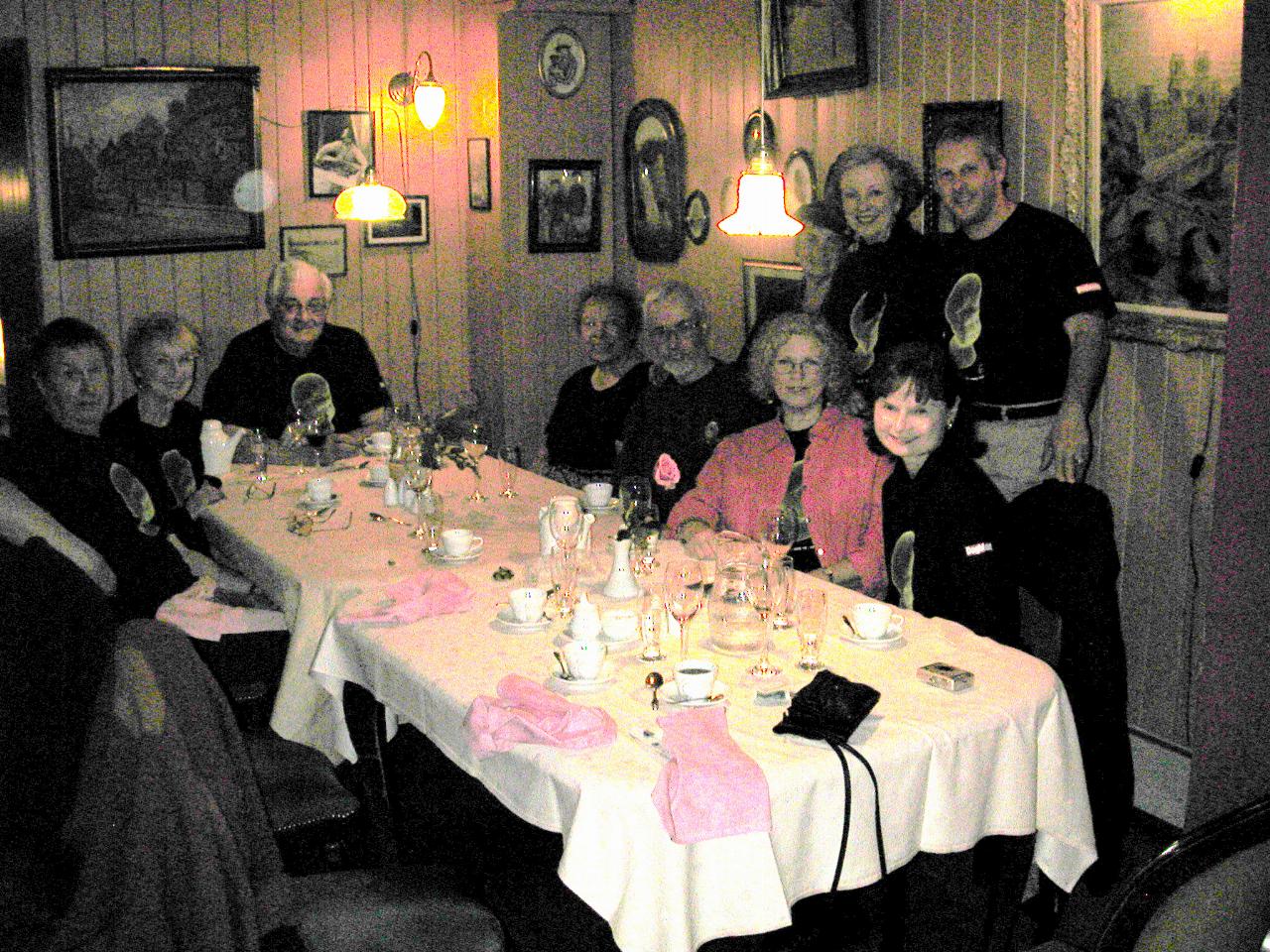 And here is my official group photo. And it's awful - this is after some serious massaging, as the photo was underexposed. [Word of explanation: You'll notice in the photo of Signe and Joey in the dining room on Mount Fløyen that I used "fill flash", which uses a low power flash to fill in the darker areas (faces in this case). Alas, I didn't realise - I don't do this often - that it also affects normal camera operations. So, I didn't adjust the camera after taking the photo on Mt. Fløyen!]