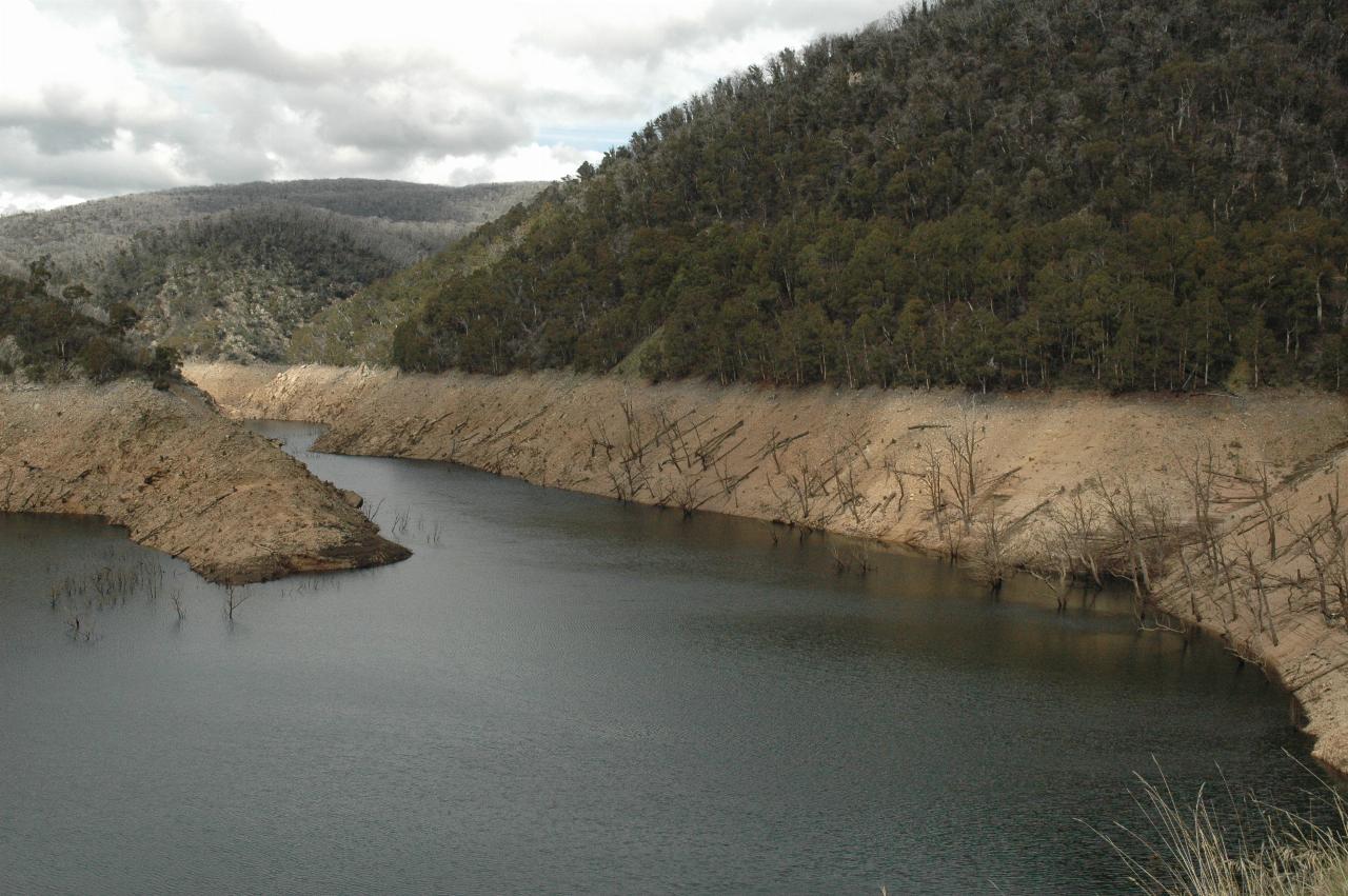 The low water level, looking towards the source of the Tumut River. The road I was on climbs up the hill on the right towards Tooma Dam.
